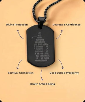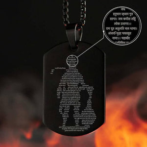 - Spiritual Symbolism: This tag necklace is an original design by Mesmerize, featuring a micro-carved Hanuman Chalisa in the shape of Hanumanji, representing the essence of Hindu faith and devotion.