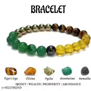 Crafted with high-quality, energy-boosting crystals, this bracelet features a combination of Citrine, Tiger Eye, and Green Aventurine, known for their unique properties in attracting wealth, promoting prosperity, and enhancing personal growth. Perfect for both men and women, the bracelet is stylish yet functional, making it the ideal accessory to wear daily.